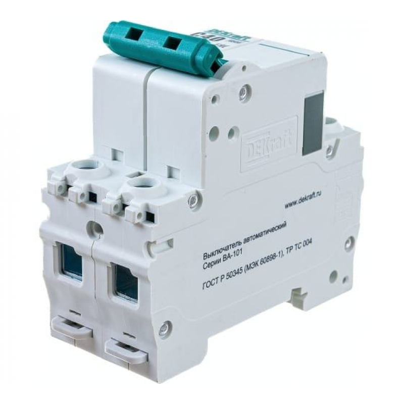 Автомат ВА-101 2Р 40А 4.5кА хар. С DEKraftНовый механизм расцепления мгновенно разрывает цепи при возникновении перегрузок и токов короткого замыкания, тем самым обеспечивая долговечную защиту цепейНовый магнитный расцепитель быстро и высокоточно фиксирует токи короткого замыкания и стабильно воздействует на механизм расцепленияУлучшенная система дуги гашения обеспечивает надежное рассечение дуги повышая основные технические характеристики аппаратаНовый подвижный и неподвижный контакт повышает электрическую износостойкость и снижает потери при передачу электроэнергииНовая конструкция канала для выхода раскаленного газа моментально рассеивают газ уберегая рядом стоящее оборудование и провода от поврежденийНовое расположение расцепителя перегрузки (биметаллическая пластина) исключает возможность повреждения расцепителя в аварийных режимах работы и изменения технических параметров аппаратаКонструкцияШирина в модулях: 2Способ монтажа: DIN-рейка 35 ммРазмеры и весШирина: 35.4 ммГлубина: 73 ммВысота: 80 мм