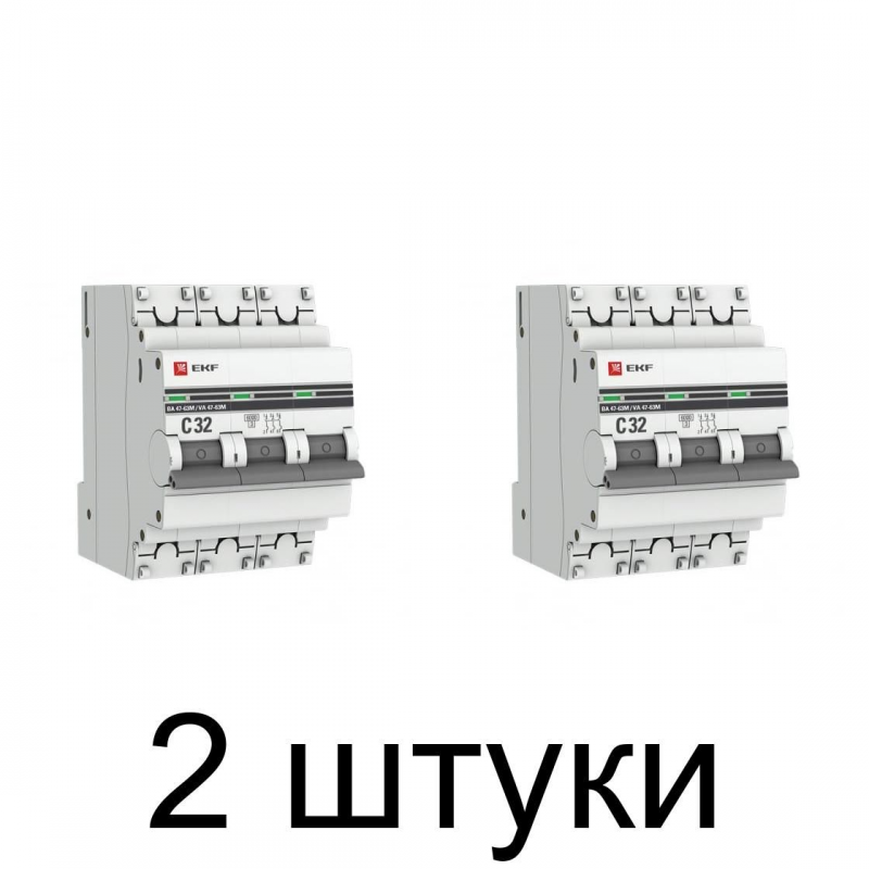 Автомат ВА 47-63, 3Р 32А 4,5кА хар.С EKF ProximaАвтоматические выключатели ВА 47-63 4,5 кА EKF PROxima являются механическими коммутационными аппаратами и соответствуют ГОСТ Р50345-2010. Особенностью данной серии выключателей является усовершенствованная конструкция. В выключателях имеются пластиковые крышки, закрывающие доступ к винтовому зажиму и служащие для опломбирования выключателей, что исключает несанкционированный доступ к проводникам. Корпус выключателей усилен дополнительными заклепками для устранения эффекта расхождения корпуса. Выключатели оборудованы удобной ручкой управления, обеспечивающей надежное оперирование изделиями. На лицевой панели выключателей имеется цветовой индикатор состояния. Конструкция установочного зажима обеспечивает свободную установку выключателя на DIN-рейку.