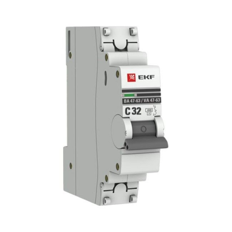 Автомат ВА 47-63, 1Р 32А 4,5кА хар.С EKF ProximaАвтоматические выключатели ВА 47-63 4,5 кА EKF PROxima являются механическими коммутационными аппаратами и соответствуют ГОСТ Р50345-2010. Особенностью данной серии выключателей является усовершенствованная конструкция. В выключателях имеются пластиковые крышки, закрывающие доступ к винтовому зажиму и служащие для опломбирования выключателей, что исключает несанкционированный доступ к проводникам. Корпус выключателей усилен дополнительными заклепками для устранения эффекта расхождения корпуса. Выключатели оборудованы удобной ручкой управления, обеспечивающей надежное оперирование изделиями. На лицевой панели выключателей имеется цветовой индикатор состояния. Конструкция установочного зажима обеспечивает свободную установку выключателя на DIN-рейку.