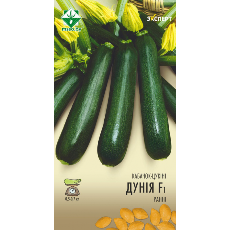 Ранний урожайный гибрид голландской селекции с длительным периодом плодоношения. Период от всходов до первого сбора урожая 45-49 дней. Растение кустового типа, компактное, с короткими междоузлиями. Плоды темно-зеленые, с глянцевым блеском, цилиндрической формы, без ребер, однородные по размеру, массой 0,5-0,7 кг. Мякоть кремовой окраски, с превосходной структурой. Вкусовые и диетические качества отличные. Устойчив к болезням. Качество семян проверено и соответствует Постановлению МСХиП РБ №37 от 29.10.2015г.