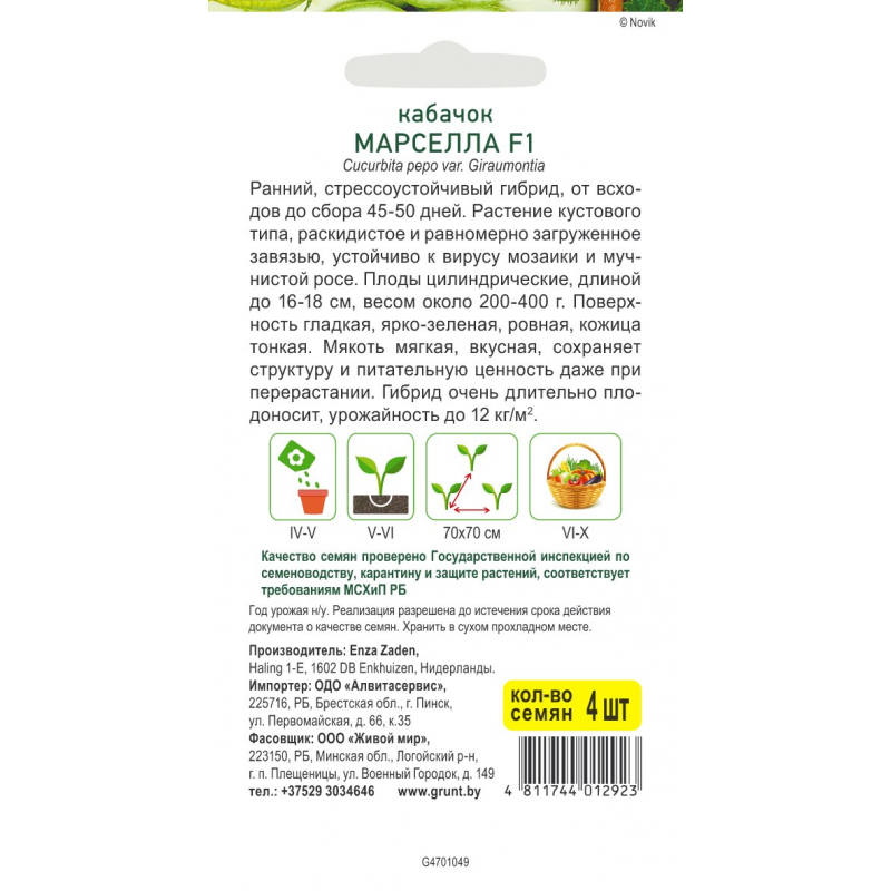 Растение кустового типа, раскидистое и равномерно загруженное завязью, устойчиво к вирусу мозаики и мучнистой росе.