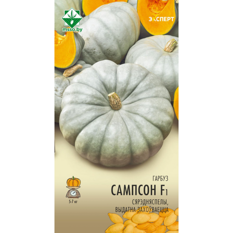 Среднеспелый урожайный гибрид голландской селекции. Период от всходов до начала уборки 105-115 дней. Относится к виду крупноплодной тыквы. Плети длиной 3,5 м. Плоды плоско-округлой формы, слегка ребристые, светло-серые, массой 5-7 кг, с небольшой семенной камерой. На каждом растении образуется 2-4 плода. Мякоть оранжевая, с плотной структурой, отличных вкусовых качеств. В комнатных условиях хранится до 6 месяцев. Качество семян проверено и соответствует Постановлению МСХиП РБ №37 от 29.10.2015г.