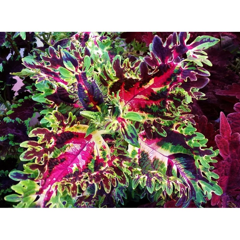 Шедевр предстоящего сезона! Рады предложить Вам уникальную смесь махрового колеуса. Листья изумительной формы и окраски. Пышный и пестрый наряд прекрасен и без цветков. Идеален в использовании не только в рабатках с многолетниками, но и в солирующей роли на газоне. Свою красоту сохранит в течение всего сезона и будет радовать глаз до наступления заморозков.