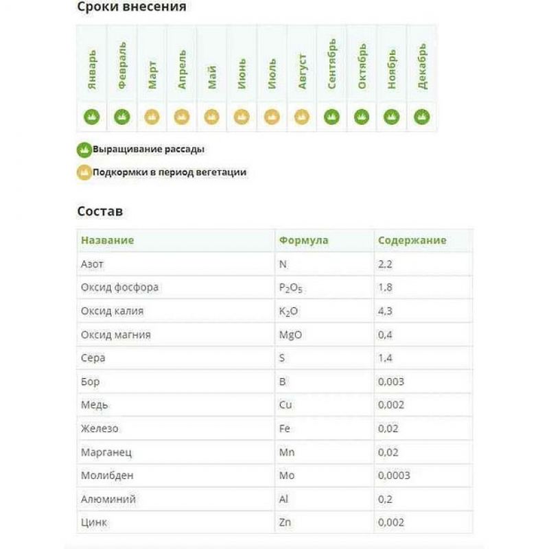- Свойства:увеличивает число цветоносов, улучшает структуру почвы, улучшает внешний вид