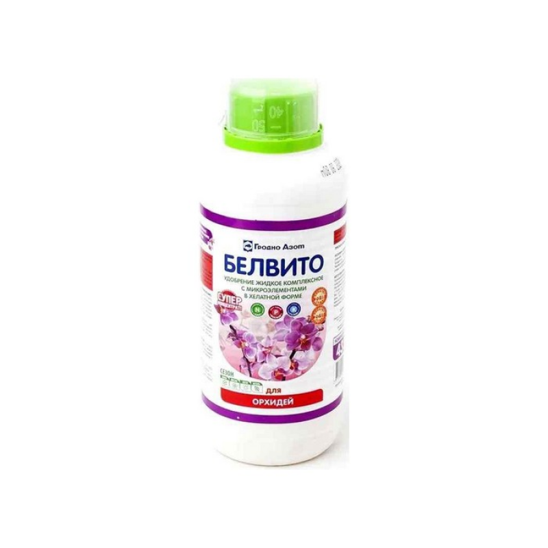 Жидкое комплексное удобрение для цветов Белвито предназначено: для корневой и внекорневой подкормки комнатных растений из семейства орхидных в условиях защищенного грунта; способствует приросту растений на 50% при внекорневой подкормке и на 30 % при корневой подкормке, повышению декоративности (повышенная окраска листьев, увеличение количества цветков). Состав: аммоний фосфорнокислый, аммиачная селитра, калий азотнокислый, микроэлементы, борная кислота, ОЭДФ, вода. Рекомендации по применению: Содержимое флакона взболтать. Приготовить 0,4 % рабочий водный раствор следующим образом: 10 мл удобрения развести в 2,5 л воды. Норма расхода: Для корневой подкормки растений (полив) — 50 мл рабочего раствора на одно растение, при объеме субстрата не менее 1 литра; для внекорневой подкормки растений (опрыскивание с тыльной стороны листа)- 20 мл рабочего раствора на одно растение, при объеме субстрата не менее 1 литра. Сроки применения: В фазу активного роста: корневая подкормка в период вегетации с интервалом 7 дней или внекорневая подкормка в период вегетации с интервалом 7 дней.