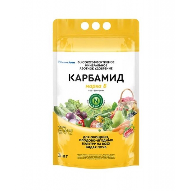 Карбамид H2N-CO-NH2 (мочевина), получаемый из аммиака и двуокиси углерода выпускается двух марок: А и Б:Карбамид марки А применяется в промышленности для производства пластмасс, клеев, смол и в животноводстве, как добавка к кормам для жвачных животных. Карбамид марки Б универсальное азотное удобрение, применяется в сельском хозяйстве для основного внесения в почву, подкормки ранней весной и в период вегетации. По своей природе карбамид - это минеральное удобрение, которое используется на всех видах почв под любые культуры. Такая форма удобрений обеспечивает значительную прибавку урожая сельскохозяйтсвенных культур. Карбамид марки Б обрабатывается кондиционирующей добавкой КФС. Карбамид негорюч, пожаро-взрывобезопасен. Расфасовка и транспортировка карбамида. Карбамид фасуют в полиэтиленовые, пропиленовые мешки, в специальные контейнеры для сыпучих продуктов и в другие виды упаковки, для розничной торговли - в полиэтиленовые пакеты по 3 кг. Карбамид отгружают в упакованном виде и насыпью с принятием мер, исключающих попадание продукта в окружающую среду и просыпание продукта. Карбамид транспортируют всеми видами транспорта, в том числе и в железнодорожных цистернах в соответствии с правилами перевозки грузов, действующими на данном виде транспорта.