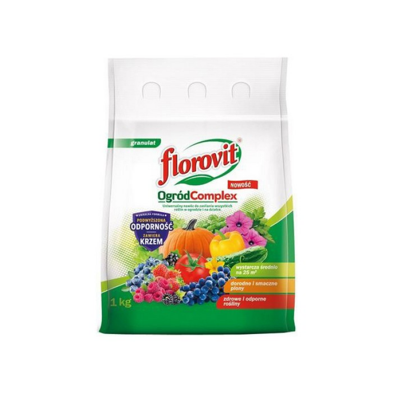 Удобрение универсальное FLOROVIT Сад Complex в гранулах (1кг) — эффективное минеральное удобрение для садовых растений, обеспечивающее комплексное питание и защиту от болезней. Идеально подходит для всех видов садовых растений.