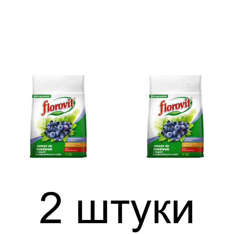 Многокомпонентное минеральное почвенное удобрение, предназначенное для подкормки голубики в течение вегетации в первый год после рассады и в последующих годах выращивания. Важное преимущество удобрения "Флоровит" для голубики - это способность окислять землю, что благоприятствует росту и развитию растений, которым требуется земля с низким уровнем pH. Характерное отличие - отсутствие нитратов. Голубика высаживается осенью в почву с pH 3,8 - 4,8. Растения, выращиваемые в почве со слишком высоким уровнем pH, отличаются небольшим количеством молодых побегов, а также преждевременным пожелтением и опаданием листьев. Удобрение предотвращает хлороз листьев в период вегетации растений. Кроме того, в нем содержатся формы питательных веществ, которые плохо перемещаются в почве, что оберегает их от вымывания в грунтовые воды. Способ применения: Первая подкормка проводится весной в начале роста растений, то есть обычно в середине апреля. Второй и третий раз удобрять почву следует каждый раз по истечении четырех недель. Подкормку рекомендуется закончить до 15 июня. После того, как удобрение будет рассыпано вокруг растений, его необходимо осторожно смешать с почвой. Рекомендуется полить растения. Дозировка: первый год после посадки – три раза по 20 г/м2, итого 60 г/год; последующие три года выращивания – три раза по 30-35 г/м2, итого примерно 100 г/год. Одна столовая ложка - 10 г удобрения.