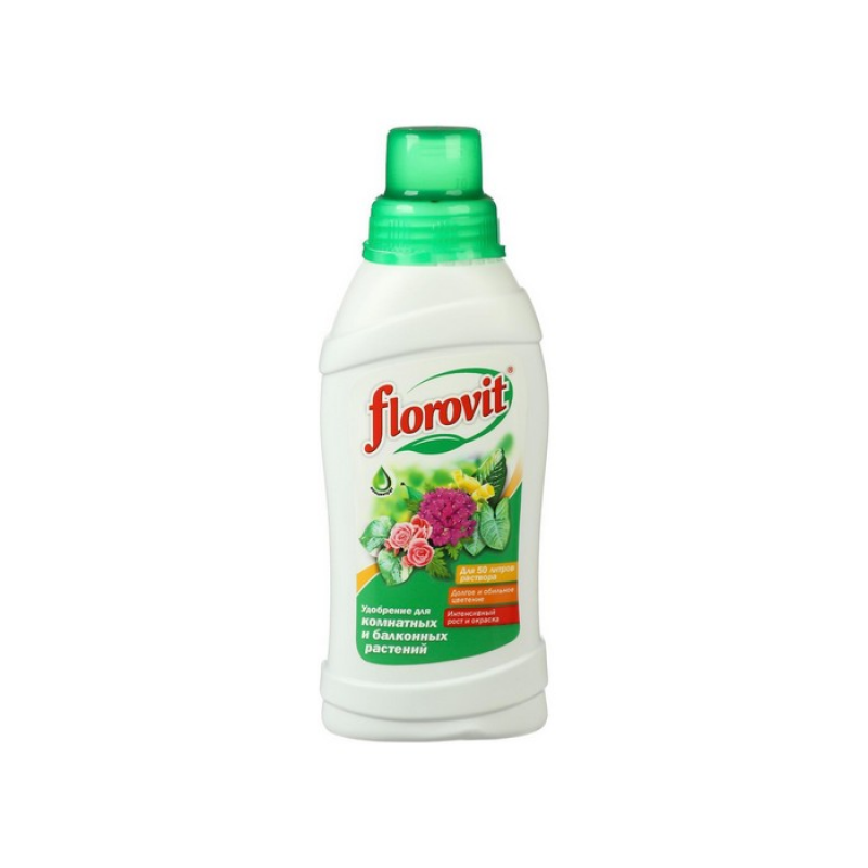 Флоровит удобрение для комнатных и балконных цветов. Концентрированное минеральное удобрение, предназначенное для подкормки всех видов комнатных и балконных цветов. Систематическое использование удобрения обеспечивает правильный рост и красивую окраску растений. Способ применения: Растения следует удобрять 1% раствором препарата - 10 мл удобрения растворить в 1 литре воды. Полученным раствором поливать растения раз в 7-14 дней в период с апреля по октябрь. Жидкие специализированные удобрения Флоровит имеют практичный дозатор, позволяющий точно и гигиенично отмерить дозу удобрения.