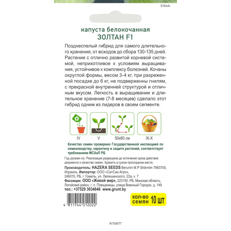 Позднеспелый Позднеспелый гибрид для самого длительного хранения, от всходов до сбора 130-135 дней. Растение с отлично развитой корневой системой, неприхотливое к условиям выращивания, устойчивое к комплексу болезней. Кочаны округлой формы, весом 3-4 кг, при разреженной посадке до 6 кг, не подверженны гнилям, с прекрасной внутренней структурой и отличным вкусом. Легкость в выращивании и длительное хранение (7-8 месяцев) сделало этот гибрид одним из лидеров в своем сегменте.