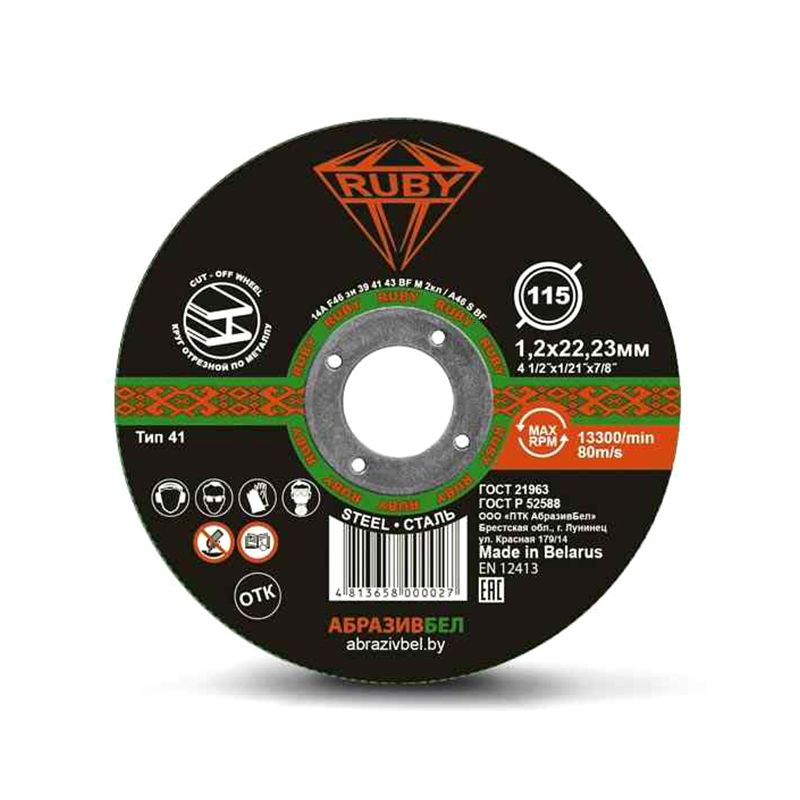 Отрезной диск RUBY диаметром 115 мм и толщиной 1,2 мм – это качественный и надежный инструмент для точной резки металла. Этот диск идеально подходит для выполнения аккуратных и чистых резов, особенно полезных в профессиональных условиях, где важны минимальные потери материала и высокая точность. Основные характеристики: Диаметр диска: 115 мм – удобный размер для работы с небольшими металлическими заготовками. Толщина диска: 1,2 мм – оптимальный тонкий профиль для аккуратного и точного реза. Посадочный диаметр: 22,2 мм – стандартный размер, подходящий для большинства угловых шлифмашин. Максимальное число оборотов: 13 300 об/мин – безопасная скорость для стабильной и эффективной работы. Преимущества: Точная и чистая резка: Тонкий профиль обеспечивает аккуратные срезы и минимальные потери материала, что особенно важно при работе с металлом. Надежное качество бренда Ruby: Производство в Беларуси компанией АбразивБел гарантирует долговечность и высокое качество. Прямая форма: Обеспечивает удобное управление и точный контроль, снижая вибрацию и улучшая комфорт работы. Рекомендации по использованию: Используйте диск на угловых шлифмашинах, поддерживающих обороты до 13 300 об/мин, для безопасной и качественной резки. Храните диск в сухом месте для защиты от влаги и сохранения его рабочих свойств. Вес: 0,029 кг Единица измерения: шт. Диск отрезной RUBY 115х1,2 мм – это оптимальный выбор для профессионалов, ценящих точность, долговечность и эффективность при резке металла.
