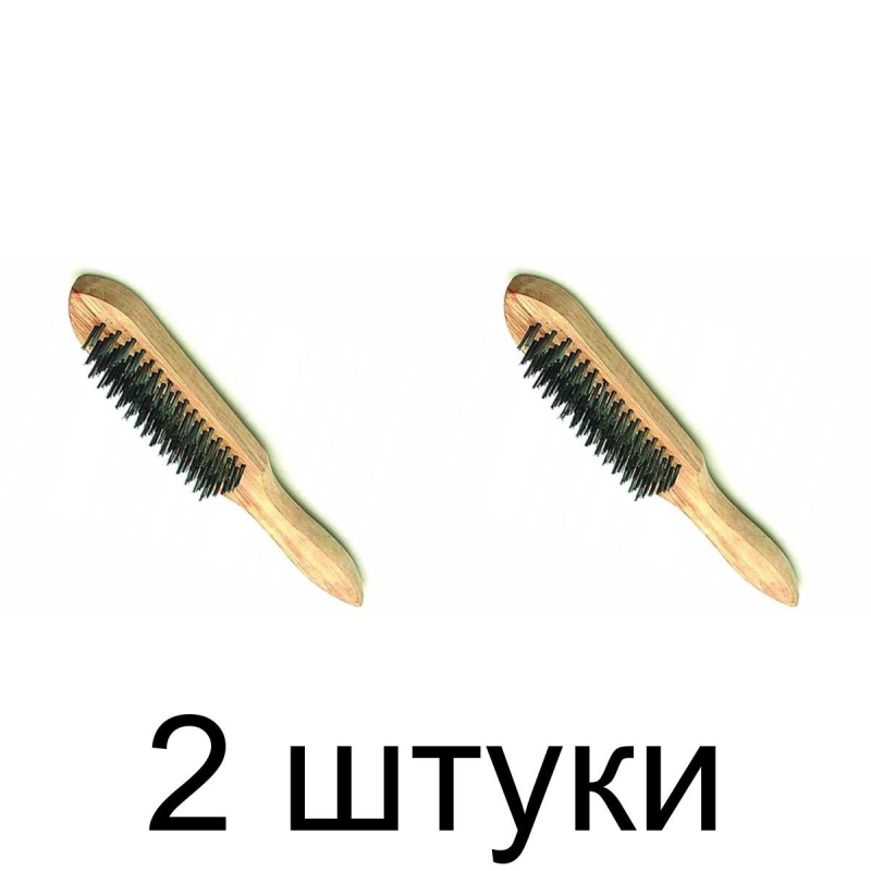Шестирядная проволочная щетка VOREL 06960 из оцинкованной стальной проволоки, встроенной в деревянный корпус. Используется для удаления ржавчины, старых лакокрасочных покрытий или других загрязнений.