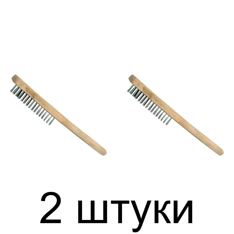 Четырехрядная проволочная щетка VOREL 06940 из оцинкованной стальной проволоки, встроенной в деревянный корпус. Используется для удаления ржавчины, старых лакокрасочных покрытий или других загрязнений.