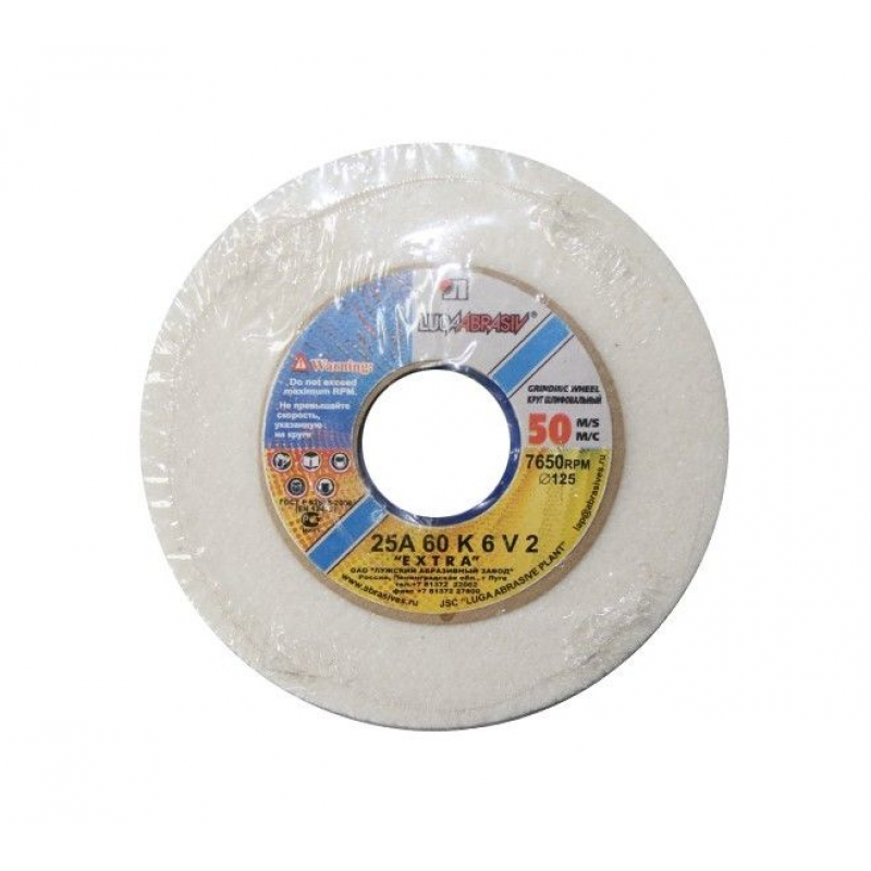 Круг шлифовальный ЛУГА 25A 125х20х32 60K6V50 предназначен для обработки закаленных деталей из углеродистых, быстрорежущих и нержавеющих сталей, обработки тонких деталей и инструментов (зубья, ножи, сверла, резцы), заточки.