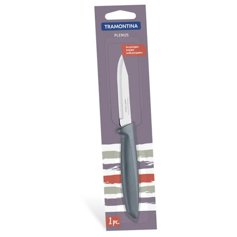 Нож для овощей Tramontina Plenus 23420163 — это надежный и удобный инструмент для ежедневной работы на кухне. Изготовленный из качественного металла, он отличается прочностью и долговечностью. Лезвие длиной 7.5 см оптимально для точной нарезки, шинковки и чистки овощей и фруктов. Общая длина ножа составляет 18.5 см, что обеспечивает комфортный хват. Эргономичная пластиковая ручка черного цвета надежно лежит в руке, предотвращая скольжение. Товар производится в Бразилии под контролем бренда Tramontina, известного своим вниманием к деталям. Вес изделия — всего 0.05 кг, что делает его маневренным и удобным в использовании. Идеально подходит для домашней кухни, позволяя быстро и аккуратно справляться с приготовлением пищи.