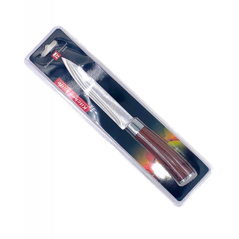 Универсальное применение на кухне; острое металлическое лезвие длиной 13 см; легкая пластиковая рукоятка коричневого цвета; компактный вес для удобного использования