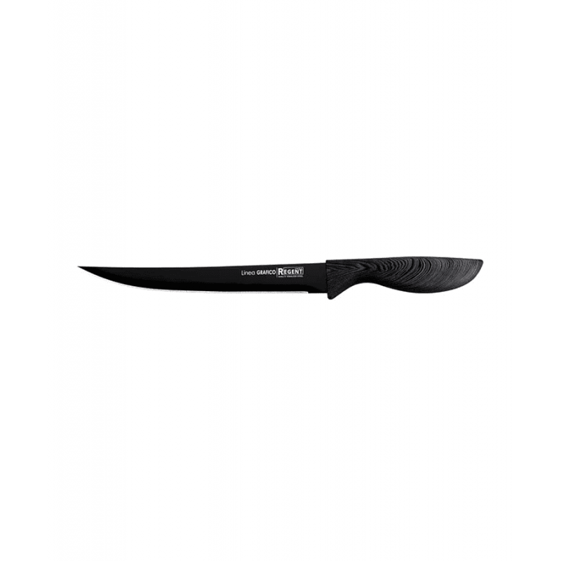 Разделочный нож Linea Grafico 93-KN-GF-3 — это надежный инструмент для кухни, выполненный из качественной нержавеющей стали. Лезвие длиной 20.5 см и общей длиной ножа 33 см оптимально подходит для нарезки мяса, рыбы, овощей и других продуктов. Рукоять из прочного пластика обеспечивает удобный и безопасный хват. Нож имеет классический черный цвет, который гармонично впишется в любой интерьер кухни. Благодаря весу 0.25 кг он хорошо сбалансирован и комфортен в использовании. Произведенный под контролем бренда Regent, этот нож сочетает в себе функциональность и эргономичный дизайн, делая процесс приготовления пищи более легким и приятным.