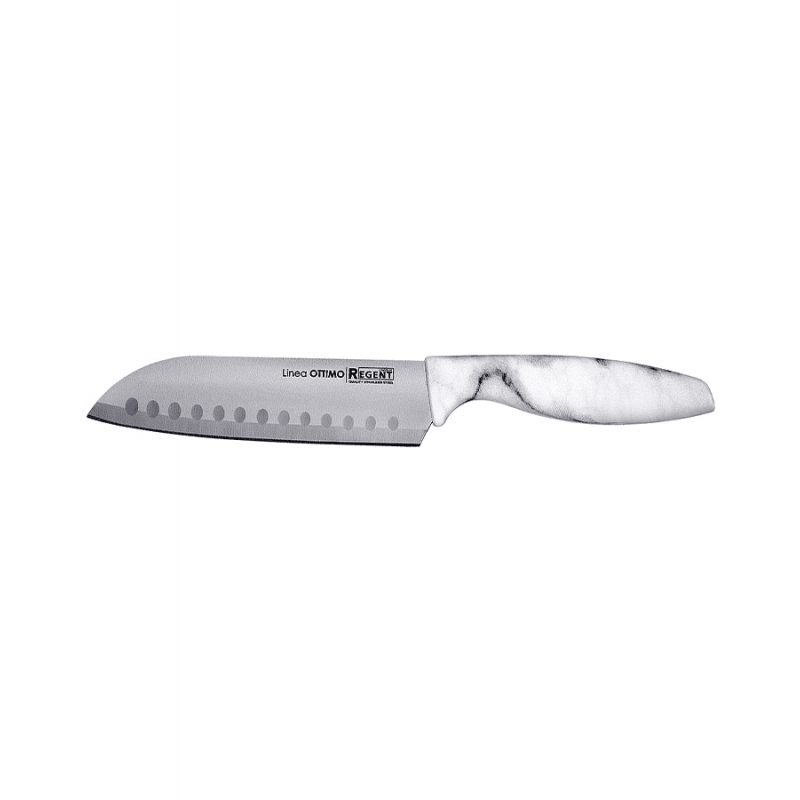 Нож сантоку Regent Linea Ottimo 93-KN-OT-2 — это профессиональный кухонный инструмент для точной нарезки овощей, фруктов, мяса и рыбы. Лезвие длиной 27.5 см из высококачественной нержавеющей стали обеспечивает остроту, долговечность и устойчивость к коррозии. Эргономичная пластиковая ручка серого цвета гарантирует надежный и комфортный хват во время работы. Универсальная форма клинка сантоку позволяет выполнять тонкую шинковку, рубку и нарезку различными техниками. Нож отличается идеальным балансом и небольшим весом (около 12.5 г), что снижает усталость руки при интенсивном использовании. Это практичное решение для домашней кухни, сочетающее функциональность японской традиции с современными материалами. Перед покупкой рекомендуем уточнять актуальные характеристики, наличие и цвет товара в конкретном магазине.