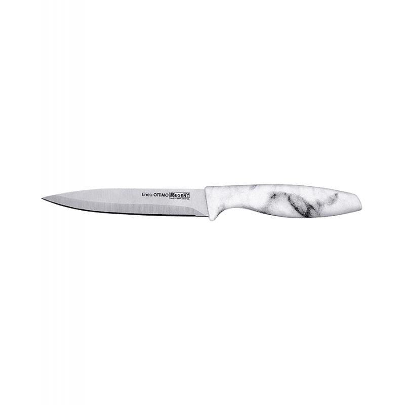 Прочный металлический клинок; эргономичная пластиковая ручка; оптимальная длина лезвия 12 см; легкий вес для удобства использования; универсальность для различных кухонных задач