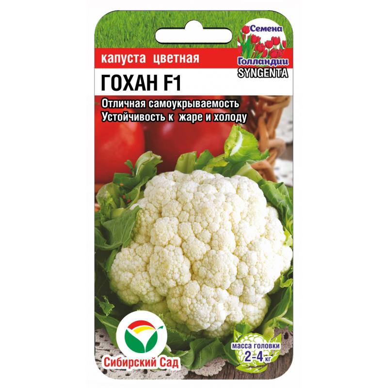 Цветная капуста Гохан F1 — высокоурожайный гибрид для открытого грунта, подходящий для летнего и раннеосеннего сбора. От высадки рассады до созревания проходит 72-75 дней. Головки плотные, с отличными вкусовыми качествами, средний вес — 2,5 кг. Подходит для свежего потребления, заморозки и консервирования.