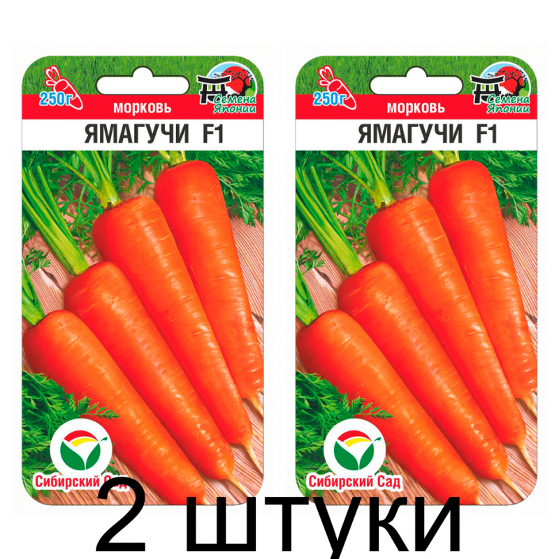 Морковь Ямагучи F1 — среднеспелый гибрид японской селекции с периодом созревания 90-95 дней. Идеально подходит для выращивания в открытом грунте в весенне-летний сезон. Корнеплоды цилиндрической формы с плавным переходом на конус и округло-тупым кончиком, длиной до 20 см, массой 100-250 г. Отличаются высокой выровненностью, насыщенным красно-оранжевым цветом мякоти и сердцевины, а также отсутствием дефектов: широких плечиков и глубоких рисок.