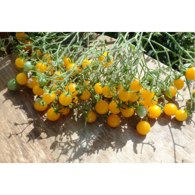 Ранний гибрид с высокими декоративными качествами и вкусными, очень сладкими плодами. Растение индетерминантное, высотой около 2 м. Плоды округлой формы, лимонно-оранжевые, собраны в огромные веерообразные кисти. Для использования в свежем виде и декорирования различных блюд. Требует подвязки, пасынкования и прищипки над 2-3 кистью. Формируют в 1 стебель. Качество семян проверено и соответствует Постановлению МСХиП РБ №37 от 29.10.2015г.