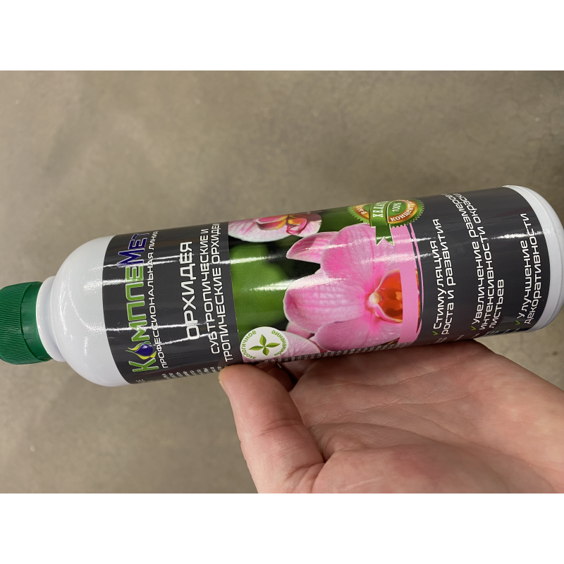 Жидкое комплексное удобрение со сбалансированным соотношением азота, фосфора, калия, магния и других элементов питания, стимулирующих рост и развитие, увеличивающих обильность и продолжительность цветения всех видов орхидей. Способ применения:корневая подкормка - полив растений раствором удобрения;некорневая подкормка - опрыскивание поверхности растений раствором удобрения, избегая попадания на цветки;норма расхода удобрения - 10 мл на 1 л воды. Симптомы недостатка азота: листья становятся бледно-зелеными, затем желтеют, рост растений задерживается, листья мельчают. Симптомы недостатка фосфора: листья становятся темно-зеленого цвета с голубоватым оттенком, замедляется рост побегов и корней, задерживается цветение. Симптомы недостатка калия: листья желтеют с краев и начинают постепенно опадать, цветки не образуются либо они очень мелкие. Симптомы недостатка магния: на листовой пластинке начинается пожелтение между продольными жилками. Подкормки проводить с интервалом 14 дней с марта по октябрь, с интервалом 30 дней с ноября по февраль. Возможно совместное применение со средствами защиты растений. Не проводить обработку под прямыми солнечными лучами, во избежание ожогов листьев.