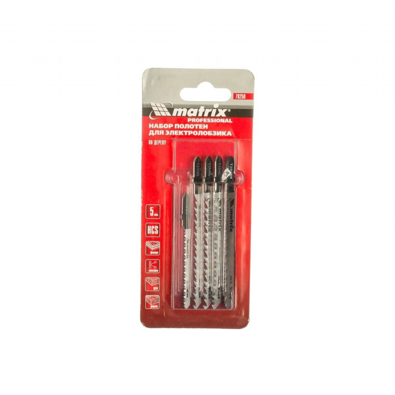 Набор полотен для электролобзика по дереву Matrix 78250 из 5 шт. предназначен для распиливания дерева, фанеры, ДСП, ламината и пластика различной толщины. Подходит как для грубого, так и точного чистого распила. Пилки устанавливают на электролобзики с зажимом под Т-образный хвостовик. Набор пригодится при выполнении столярных работ и на занятиях творчеством. Преимущества Полотна изготовлены из высокоуглеродистой стали, поэтому обладают высокими прочностными характеристиками. Узкая пилка для фигурного реза осуществляет тонкий и ровный криволинейный пропил. Пилка с обратным зубом облегчает распиливание ламината и ДСП с лицевой стороны, поскольку не оставляет задиров и сколов. Все полотна в наборе изготовлены на специализированном оборудовании из высококачественных материалов, поэтому очень надежны.
