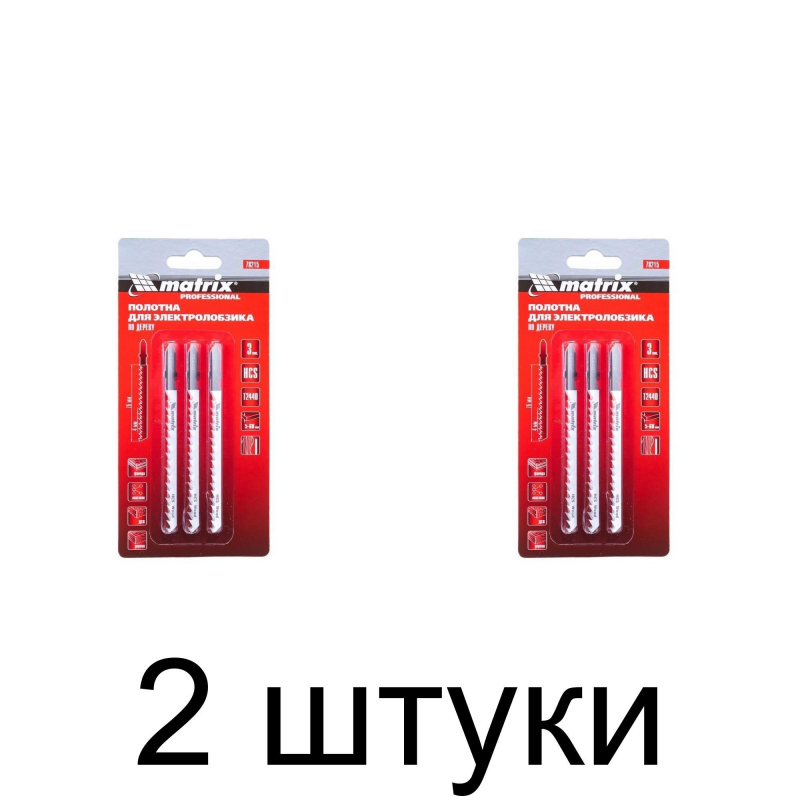 Полотна для электролобзика Matrix 78215, T244D, 75 х 4 мм, из стали HCS, 3 шт. в упаковке, — набор оснасток для работ по дереву толщиной 5-60 мм. Также эффективны при распиловке фанеры, ДСП, ДВП и пластика. Позволяют выполнять криволинейные пропилы и подходят для всех электролобзиков с зажимами под Т-образный хвостовик. Будут полезны во время ремонта, при производстве и сборке мебели, а также в быту.