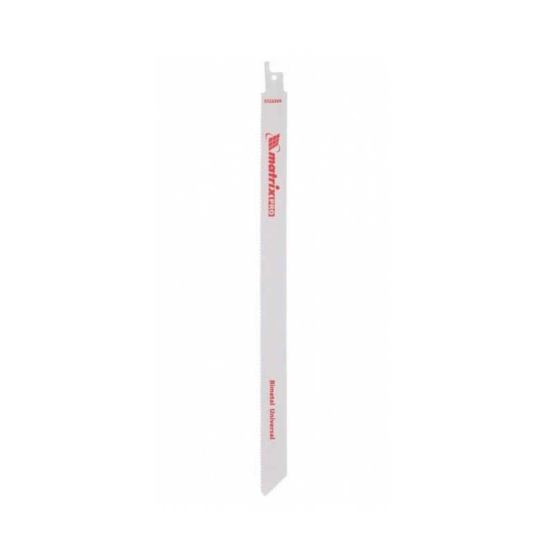 Универсальные полотна для сабельной пилы Matrix PRO 782003, S1222VF, 275/1,8-2,5 мм, Bimetal, 2 шт. в упаковке, позволяют распиливать заготовки из дерева, пластика, листового металла, фанеры, ДСП, справляются также с алюминиевыми профилями и древесиной с гвоздями. В зависимости от материала глубина распила составляет от 3 до 250 мм. Полотна пригодятся на строительной площадке, во время ремонта, демонтажа различных конструкций, будут полезны дома и на даче. Преимущества: Пилки выполнены из биметалла (основа — пружинная сталь, рабочая кромка — быстрорежущая сталь), поэтому отличаются высокой режущей способностью в сочетании с прочностью и упругостью. Твердость режущей кромки составляет 60-64 HRC, поэтому она сохраняет свои рабочие качества при длительном использовании. Зубья с переменным шагом 1,8-2,5 мм обеспечивают быстрый и качественный распил любых материалов. В упаковке 2 полотна, которых хватит для выполнения большого объема работ.