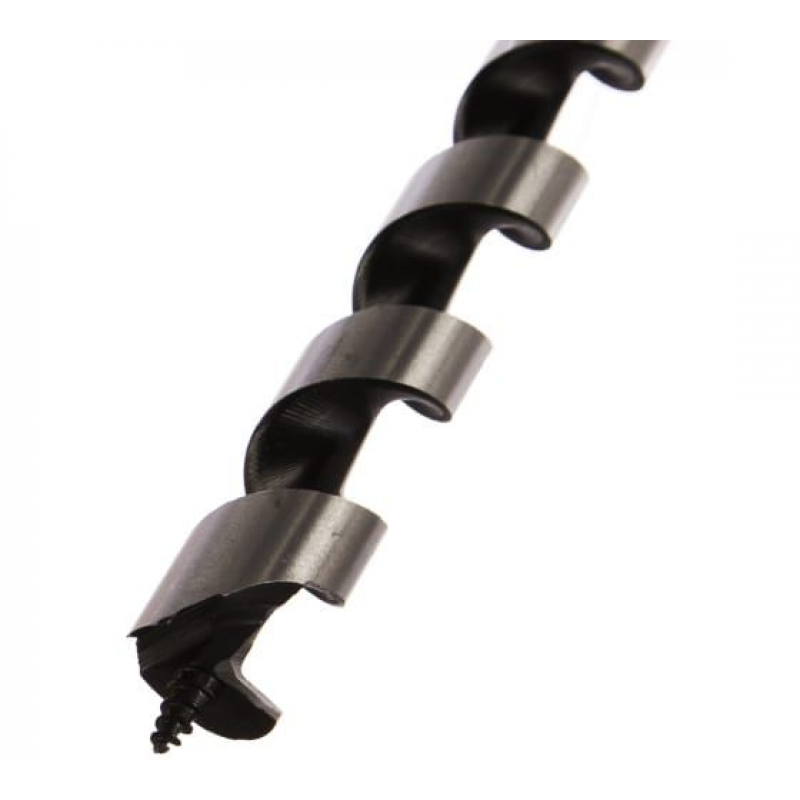 Сверло имеет высокий ресурс, т.к. изготовлено из инструментальной стали, а режущая часть закалена до твердости 40 HRC.Снаружи шнек обработан до зеркального блеска, поэтому отверстие получается гладким и ровным.Массивная спираль обеспечивает эффективный отвод стружки, позволяя осуществлять глубокое сверление.За счет центрирующего острия снижается осевая нагрузка, что облегчает засверливание, повышает точность работы и предотвращает смещение сверла.Благодаря шестигранному хвостовику сверло не прокручивается в процессе эксплуатации.