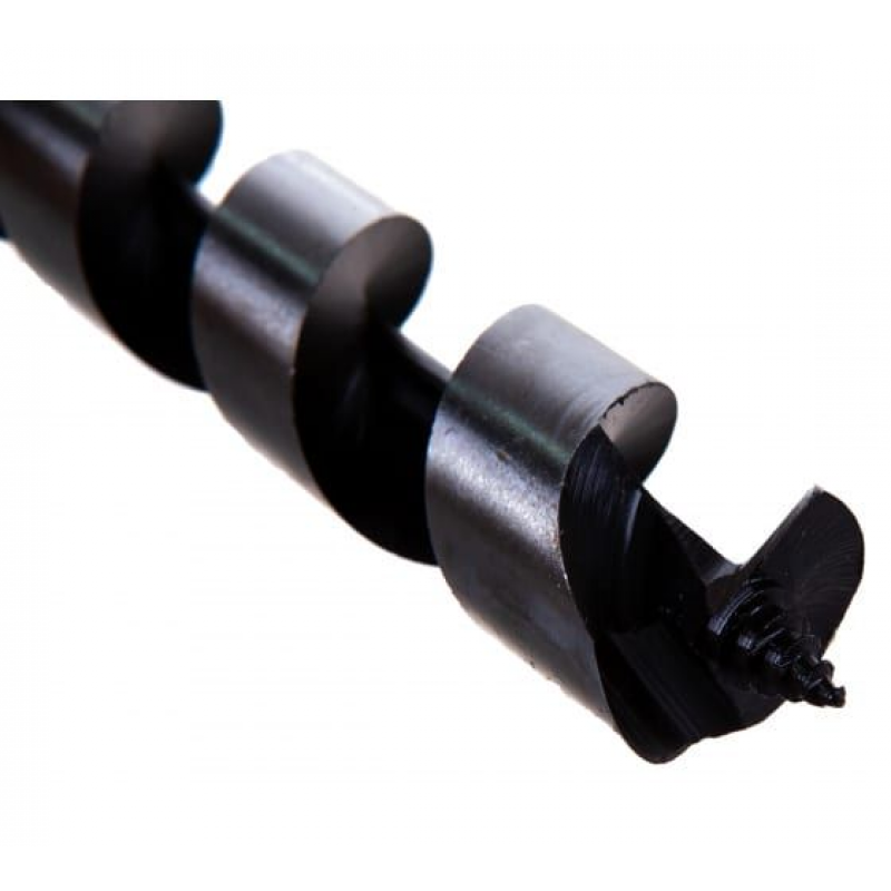 Сверло имеет высокий ресурс, т.к. изготовлено из инструментальной стали, а режущая часть закалена до твердости 40 HRC.Снаружи шнек обработан до зеркального блеска, поэтому отверстие получается гладким и ровным.Массивная спираль обеспечивает эффективный отвод стружки, позволяя осуществлять глубокое сверление.За счет центрирующего острия снижается осевая нагрузка, что облегчает засверливание, повышает точность работы и предотвращает смещение сверла.Благодаря шестигранному хвостовику сверло не прокручивается в процессе эксплуатации.