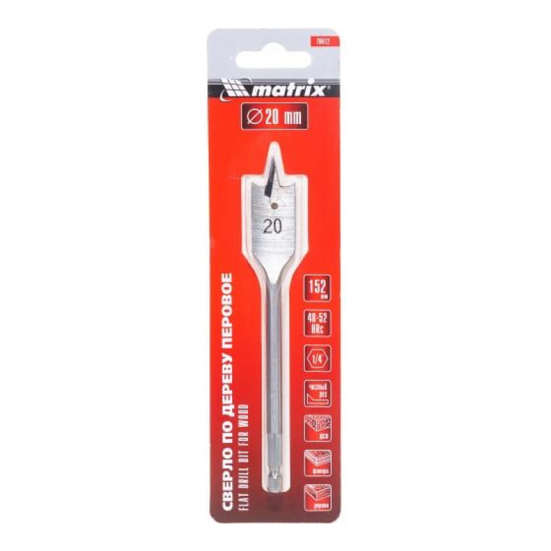 Это перовое сверло предназначено для аккуратного сверления отверстий диаметром 20 мм в дереве, фанере, ДСП и других древесных материалах. С его помощью можно получить чистые, гладкие отверстия, что делает его идеальным для мебельных и плотницких работ.