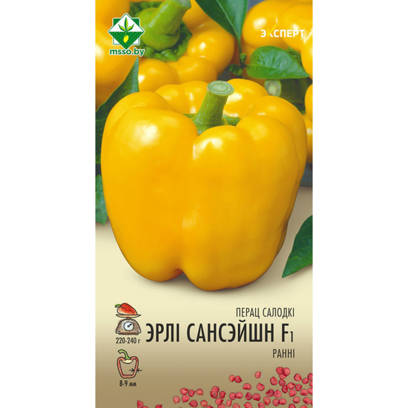 Ранний высокоурожайный гибрид голландской селекции. Растение компактное, высотой 60-70 см. Плоды крупные, кубовидной формы, отличного качества, массой 220-240 г, в технической спелости зеленые, в биологической – золотисто-желтые. Мякоть сочная, сладкая, ароматная, толщиной 8-9 мм. Дегустационная оценка 5 баллов. Характеризуется высокой завязываемостью плодов и устойчивостью к болезням. Рекомендован для выращивания в теплицах. Качество семян проверено и соответствует Постановлению МСХиП РБ №37 от 29.10.2015г.