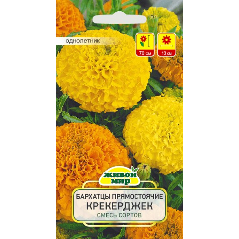 Образует куст высотой 70 см с ясно выраженным главным побегом. Соцветия крупные, густомахровые, оранжевой, золотисто-желтой и лимонно-желтой окраски, диаметром 11-14 см.