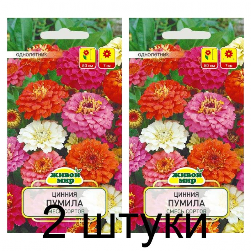 Раннецветущая смесь махровых цинний ярких светящихся окрасок.