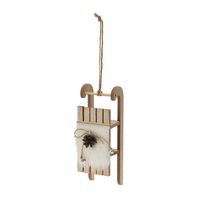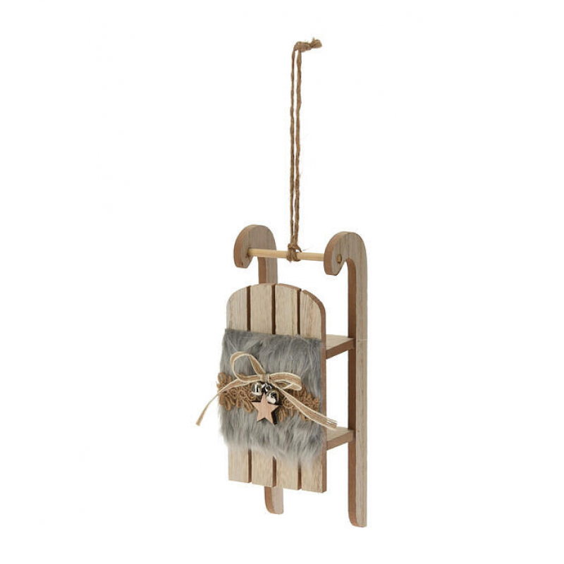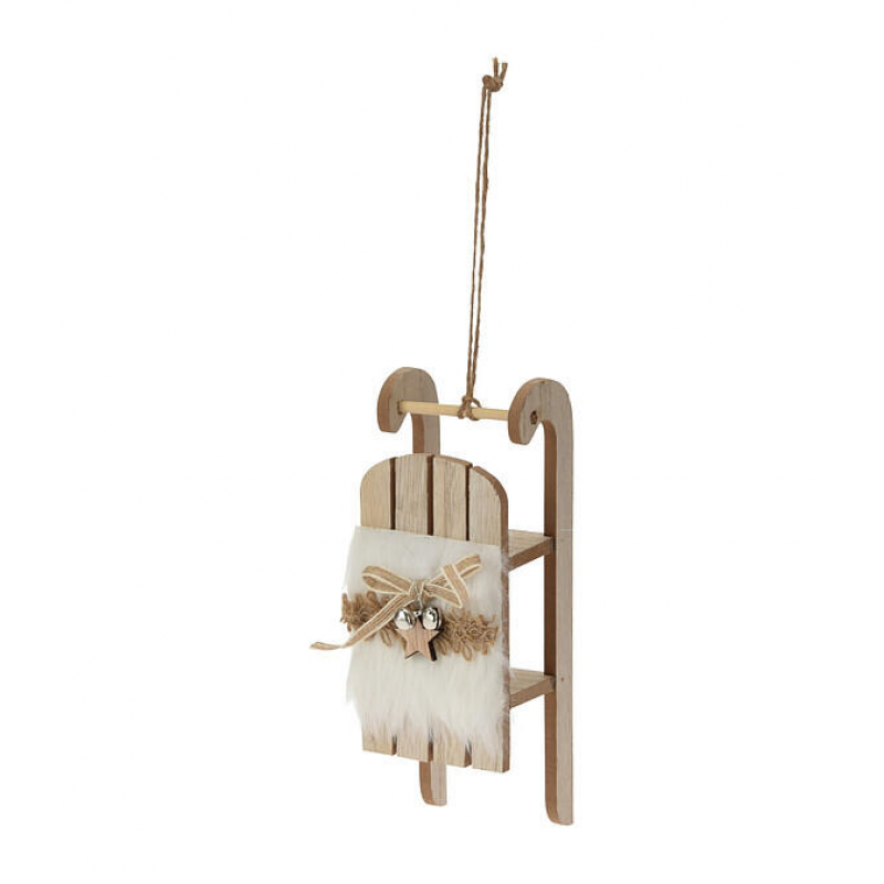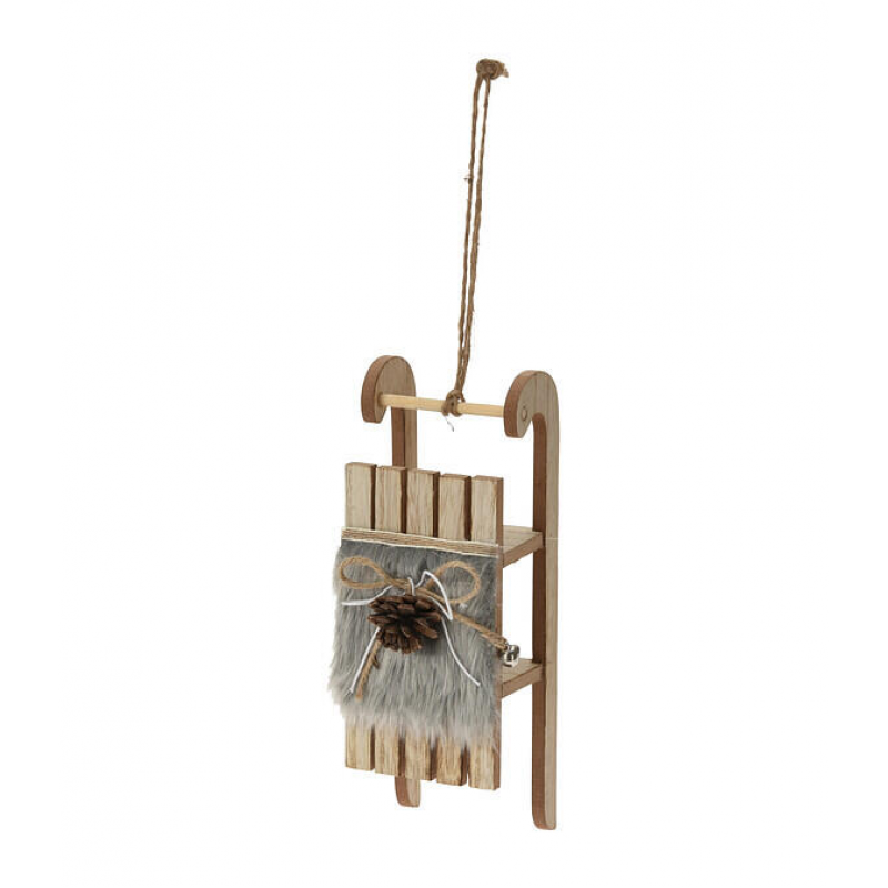 Эти деревянные санки станут прекрасным украшением для новогодней елки. Разместите их на видном месте среди ветвей, чтобы создать уютную зимнюю композицию. Игрушка отлично сочетается с другими украшениями в коричнево-бело-серой гамме, позволяя создать гармоничный праздничный декор. Санки можно использовать как самостоятельный акцент или как часть тематической композиции с другими зимними атрибутами. Берегите от падений и прямого воздействия влаги, чтобы сохранить первоначальный вид деревянной поверхности. Идеально подходят для создания семейных традиций и могут передаваться из поколения в поколение как памятный рождественский атрибут.
