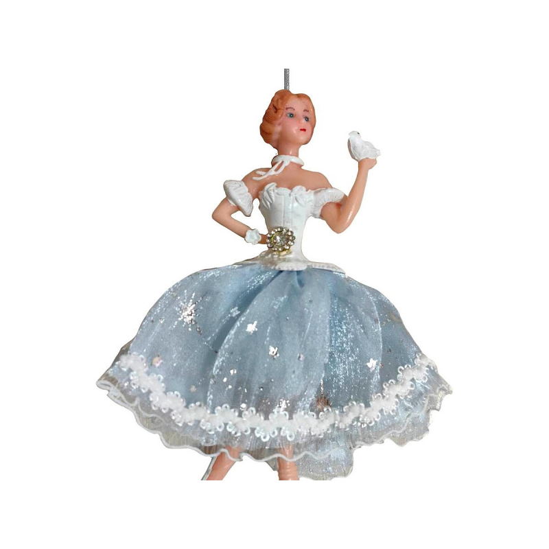 Изящный дизайн балерины; Качественные материалы - пластик и текстиль; Нежный голубой цвет; Идеальный размер 13 см для заметного украшения; Легкий вес для удобного размещения; Коллекционная ценность