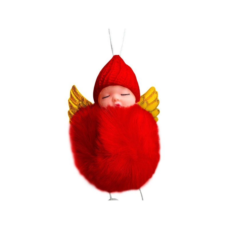Яркий красный цвет создает праздничное настроение; Качественный текстиль обеспечивает долговечность; Компактный размер 15 см идеально подходит для елки; Легкий вес не утяжеляет ветки; Детализированная проработка ангела; Универсальное украшение для любого интерьера