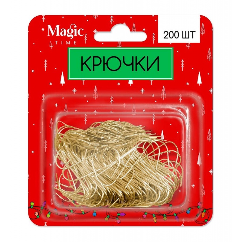 Набор из 200 металлических крючков золотого цвета от бренда MAGIC TIME — это практичное решение для создания праздничной атмосферы и грамотной организации пространства. Изделия размером 3,5 см выполнены из прочного металла с элегантным золотым покрытием, что гарантирует их долговечность и привлекательный внешний вид. Благодаря универсальности крючки подходят для подвешивания разнообразных украшений, гирлянд, фотографий и легких декоративных элементов, помогая преобразить интерьер к любому торжеству.