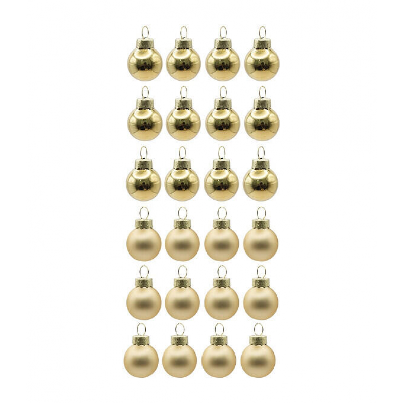Роскошный золотой цвет; Качественное стекло; Компактный размер 2,5 см; Набор 24 штуки; Удобная упаковка для хранения