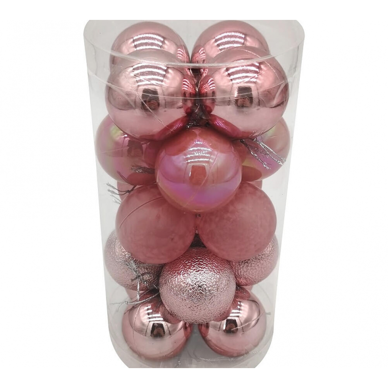 Яркий розовый цвет создает праздничное настроение; Прочный пластик обеспечивает долговечность; Компактный размер 4 см для гармоничного украшения; Легкий вес удобен в использовании; Набор из 20 шаров позволяет создать объемный декор
