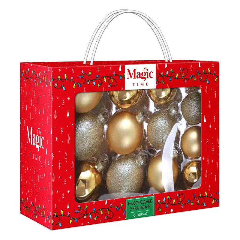 Набор из 26 елочных шаров MAGIC TIME 90747 золотого цвета создаст волшебную атмосферу праздника. Шары выполнены из качественного стекла диаметром 5, 6 и 7 см, что позволяет создать гармоничную композицию на новогодней елке. Золотой цвет символизирует богатство и успех, добавляя интерьеру роскоши и праздничного настроения. Разный размер шаров дает возможность проявить творческий подход в декорировании - более крупные можно разместить в центре композиции, а мелкие использовать для заполнения пространства. Набор упакован в удобную коробку, что обеспечивает безопасное хранение украшений после праздников. Идеальное решение для создания элегантного новогоднего декора дома, в офисе или торговом центре.