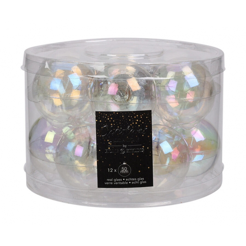Набор из 12 елочных шаров диаметром 5 см от бренда KOOPMAN. Шары изготовлены из качественного стекла и имеют эффектную радужную окраску, которая создает праздничное настроение и переливается разными цветами в свете новогодних гирлянд. Идеально подходят для украшения новогодней елки, создания праздничных композиций и декора интерьера. Каждый шар тщательно упакован для безопасной транспортировки. Набор поставляется в удобной упаковке, вес которой составляет 0,25 кг. Страна производства - Китай.
