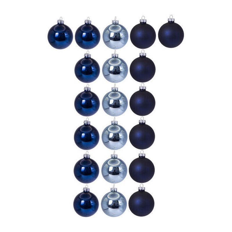 Элегантный синий цвет; Качественное стекло с изысканным блеском; Комплект из 20 шаров для богатого декора; Удобная упаковка для безопасного хранения; Легкий вес для простоты использования