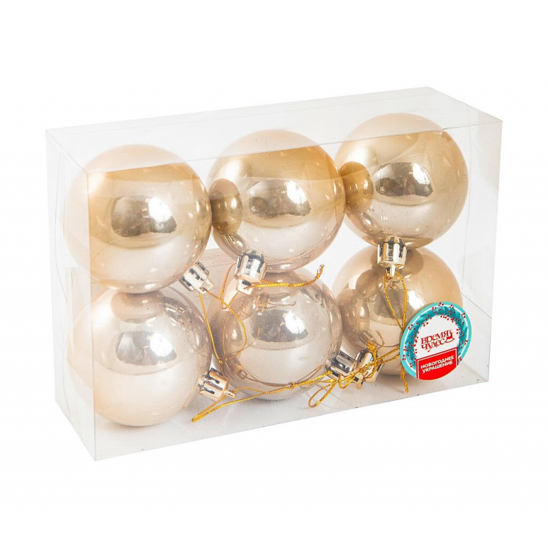 Качественный пластик; Долговечность использования; Безопасность для детей; Элегантный золотой цвет; Комплект из 6 одинаковых шаров; Легкий вес для удобного размещения