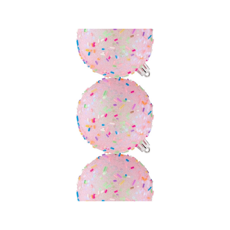 Прочный небьющийся пластик; Элегантный белый цвет с блестками; Универсальный размер 8 см; Комплект из 3 шаров для гармоничного декора; Долговечность и сохранение внешнего вида