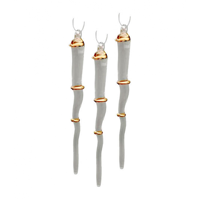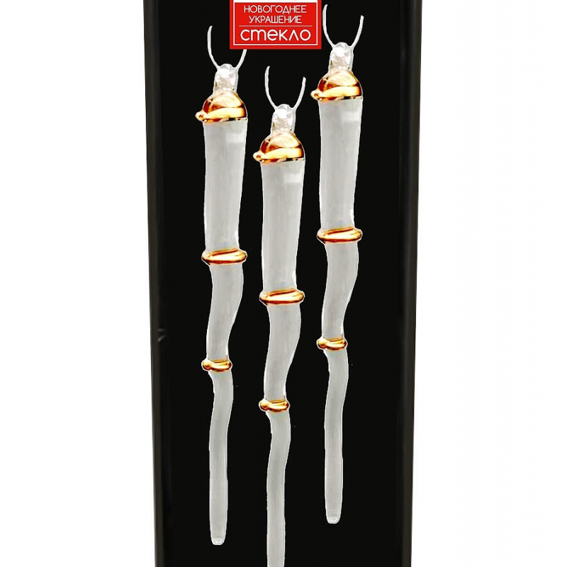Элегантный дизайн в бело-золотых тонах; Качественное стекло с красивым блеском; Удобный набор из 3 украшений; Легкий вес для простого размещения; Классическая форма сосулек для гармоничного декора