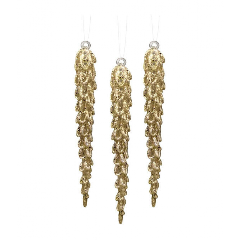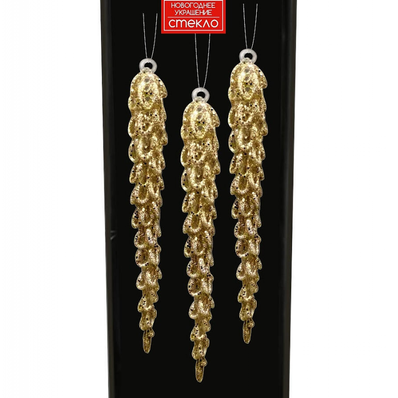 Стильный золотой цвет; Качественное стекло; Заметный размер 18 см; Комплект из 3 украшений; Удобная упаковка