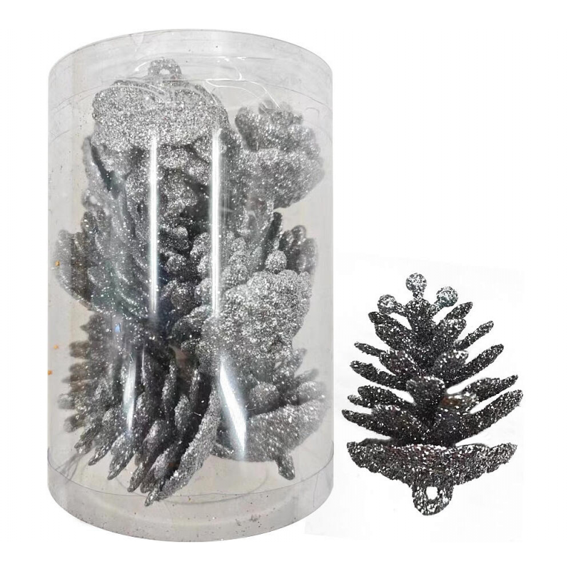 Используйте эти элегантные серебряные шишки для украшения новогодней елки, равномерно распределяя их по ветвям для создания гармоничного образа. Отлично подходят для декора праздничных гирлянд, венков и композиций. Сочетайте с украшениями других цветов для создания контрастных решений или используйте в монохромном серебряном стиле. После праздников аккуратно снимите украшения с елки, протрите от пыли и храните в оригинальной упаковке до следующего использования. Подходят для многократного применения благодаря прочному материалу изготовления.